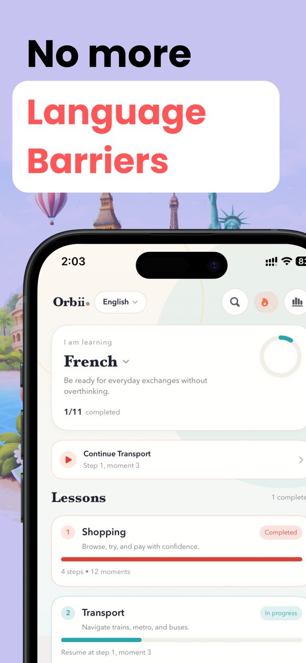 - Can I practice useful phrases before a trip? Yes. Orbii focuses on real travel scenarios like food, transport, hotels, and shopping.