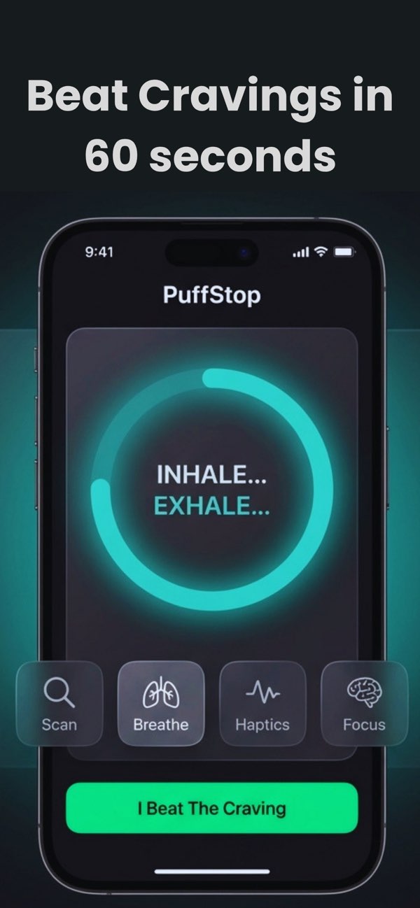 PuffStop combines anti-craving actions, progress tracking, and motivation so each day feels measurable.
